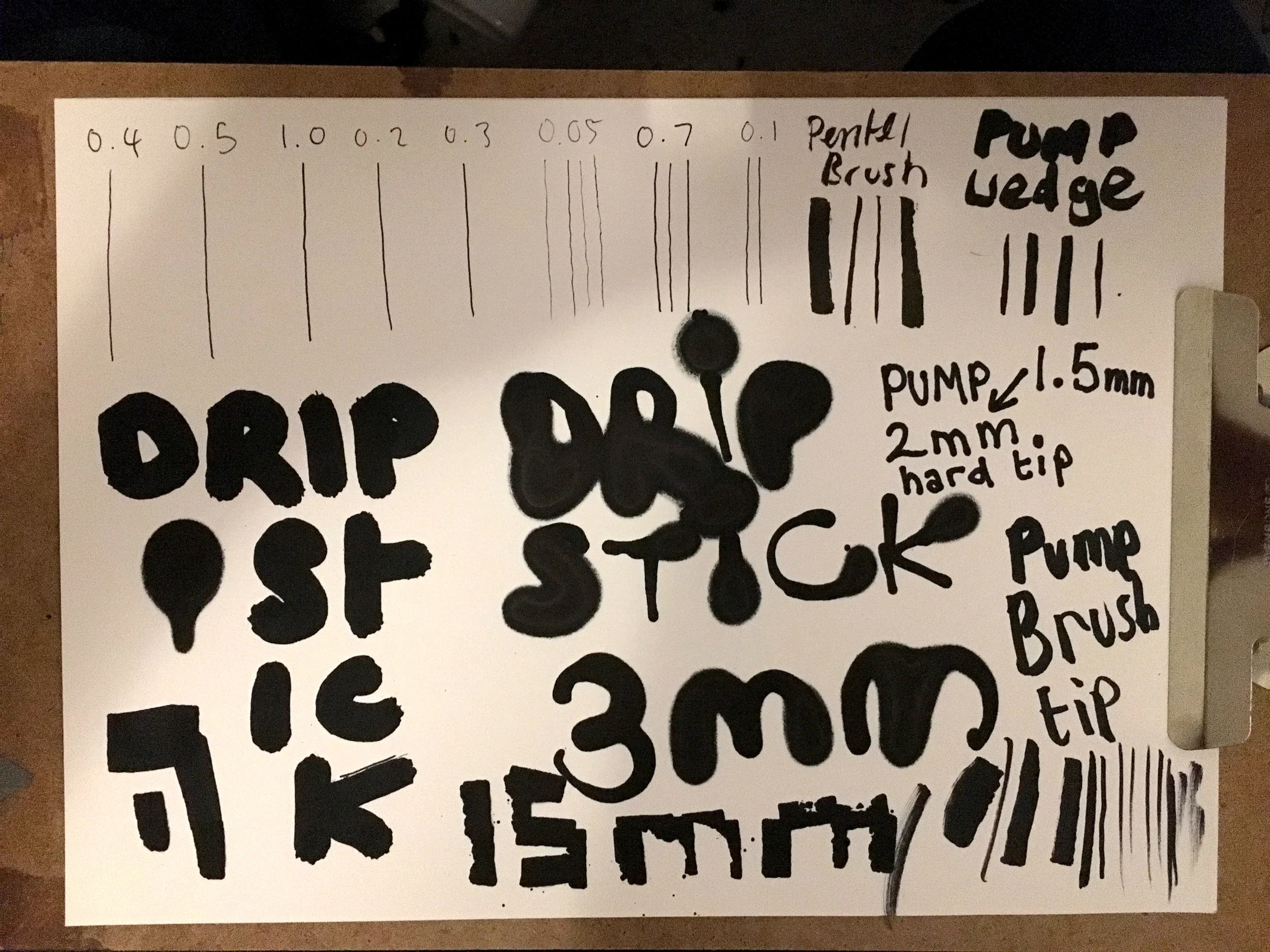 Testing a few of the diffferent brushes I’ve filled with Molotow Ink