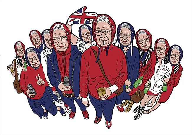 LINK ABOVE to The Liz Gang in glorious Union Jack colours. Made into a limited T-Shirt run at Misterdressup.com - Being sold from now until 31st December
