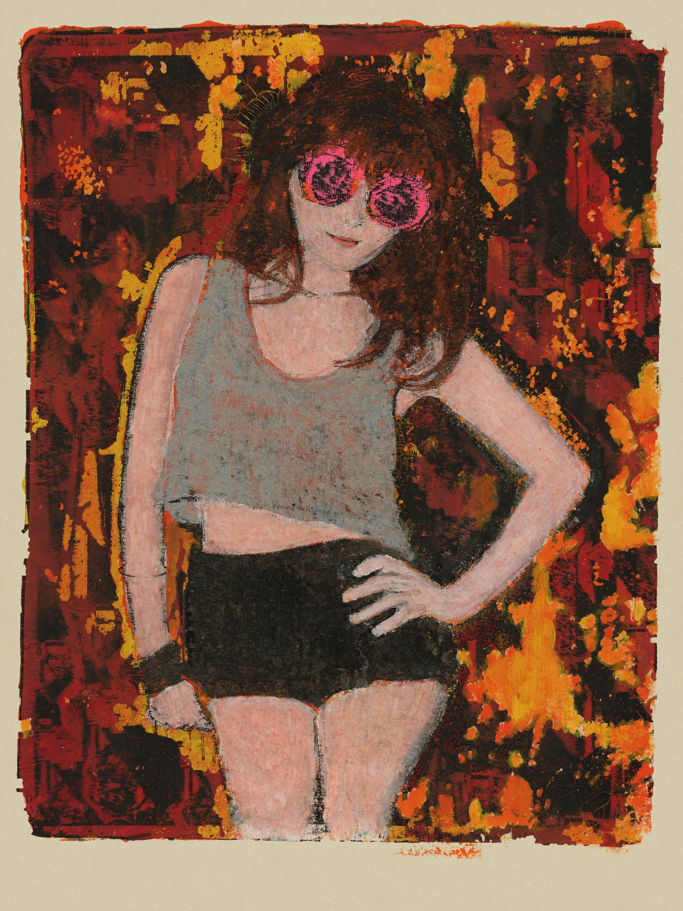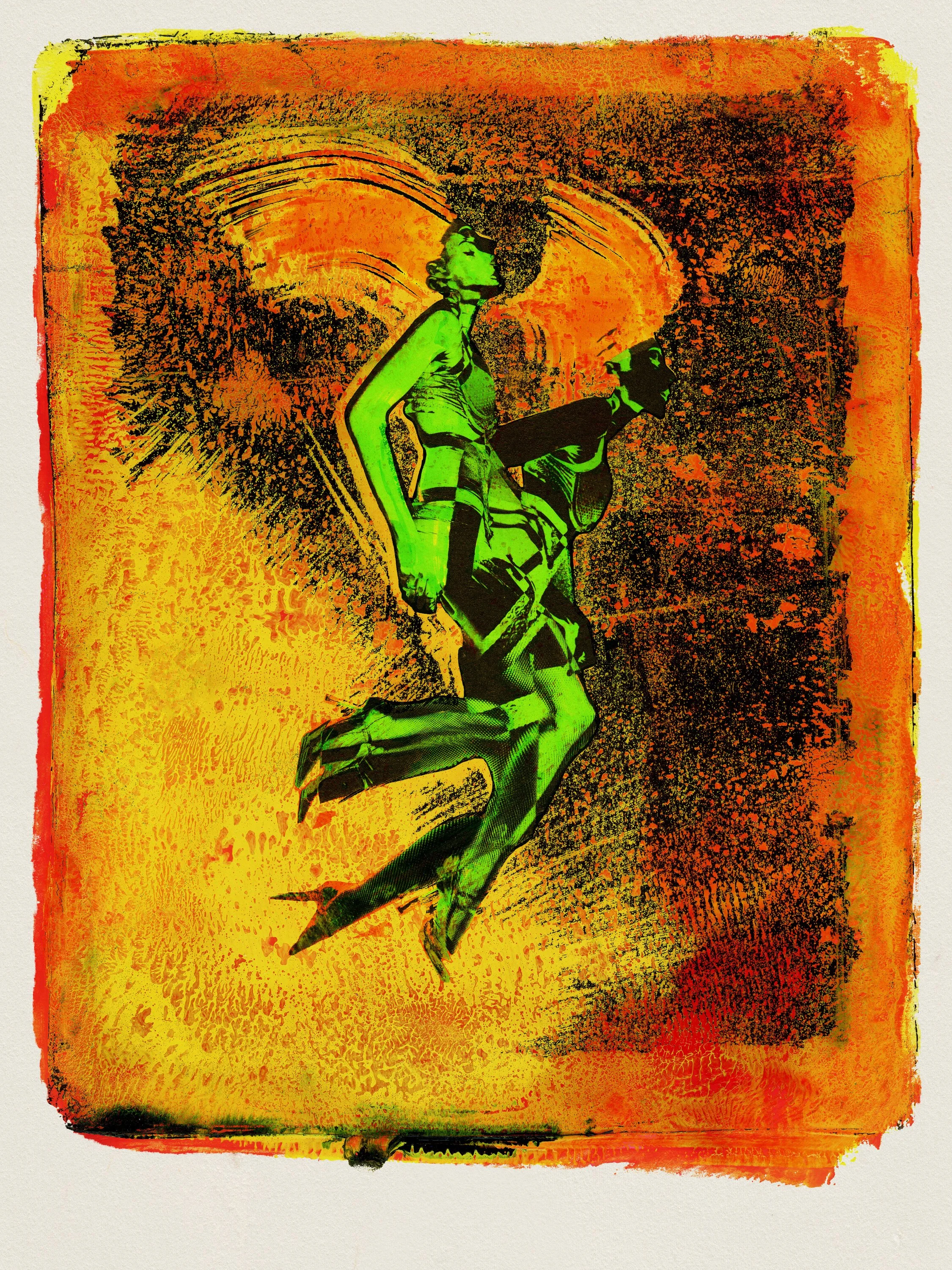 I made art to reflect this feeling. I see sound. The collection is made up of an array of short animations and static images. Mixing reactive inks, paints, gelli plates and positive and negative layers mixed with my collection of music and sound related photos.